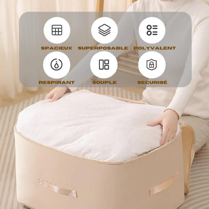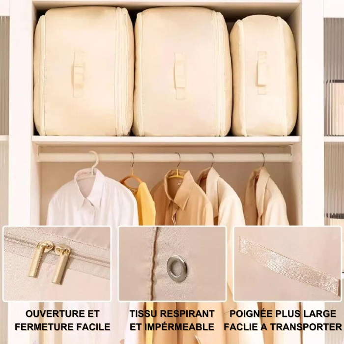 Enfin domptez les armoires débordantes et les espaces de rangement exigus avec nos Sacs de Rangement. Parfaits pour les vêtements, les couettes et plus encore, ces sacs polyvalents gardent tout organisé et facilement accessible.